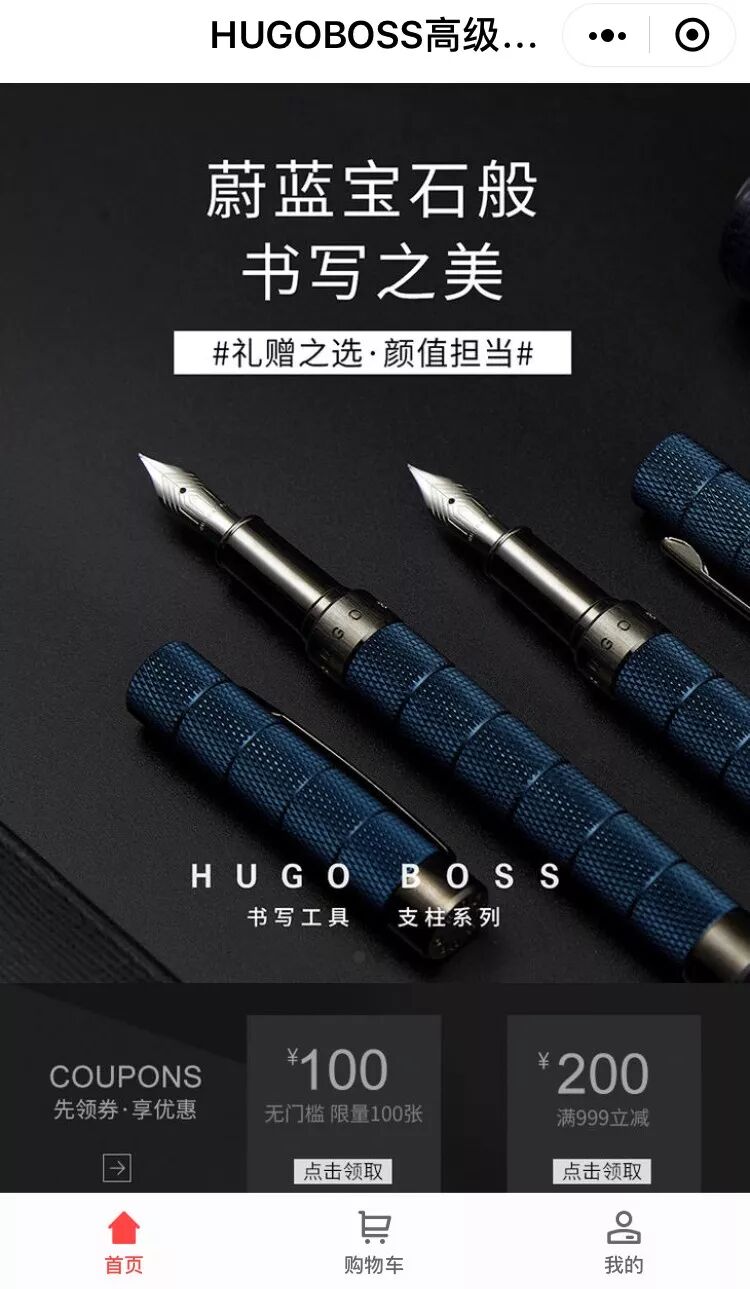 据亿邦动力 近日,HUGOBOSS上线「HUGOBOSS高级书写」商城小程序,目前商城上线了包括钢笔、原子笔、宝珠笔在内的旗舰款明星款等书写产品。