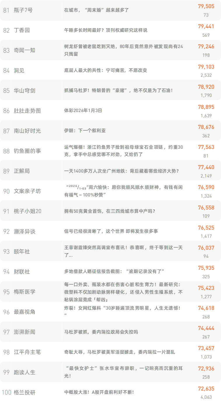 跳转原文请戳:《中国人最爱的养生方式,正在疯狂致癌》新榜榜单小程序版正式上线,榜单想看就看,更多热门内容也可登录新榜网站www.newrank.cn进行查询,点击「阅读原文」查看新榜指数算法说明。新榜排行榜newranklist