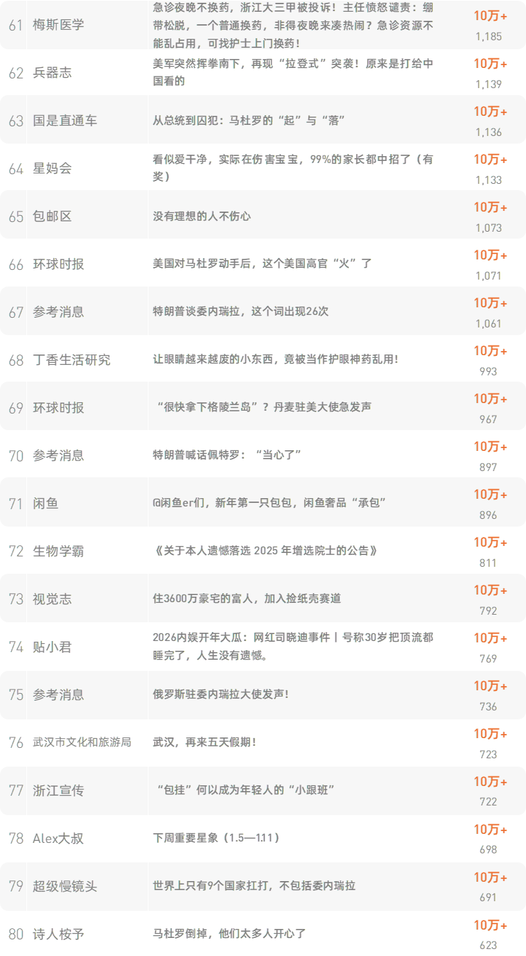 跳转原文请戳:《“最快女护士”张水华宣布辞职后,医院回应:已批准其辞职申请》新榜榜单小程序版正式上线,榜单想看就看,更多热门内容也可登录新榜网站www.newrank.cn进行查询,点击「阅读原文」查看新榜指数算法说明。新榜排行榜newranklist