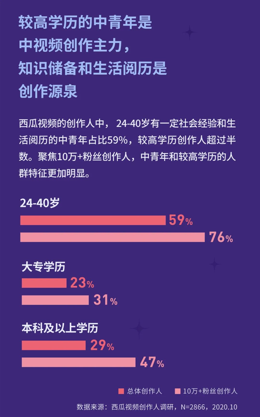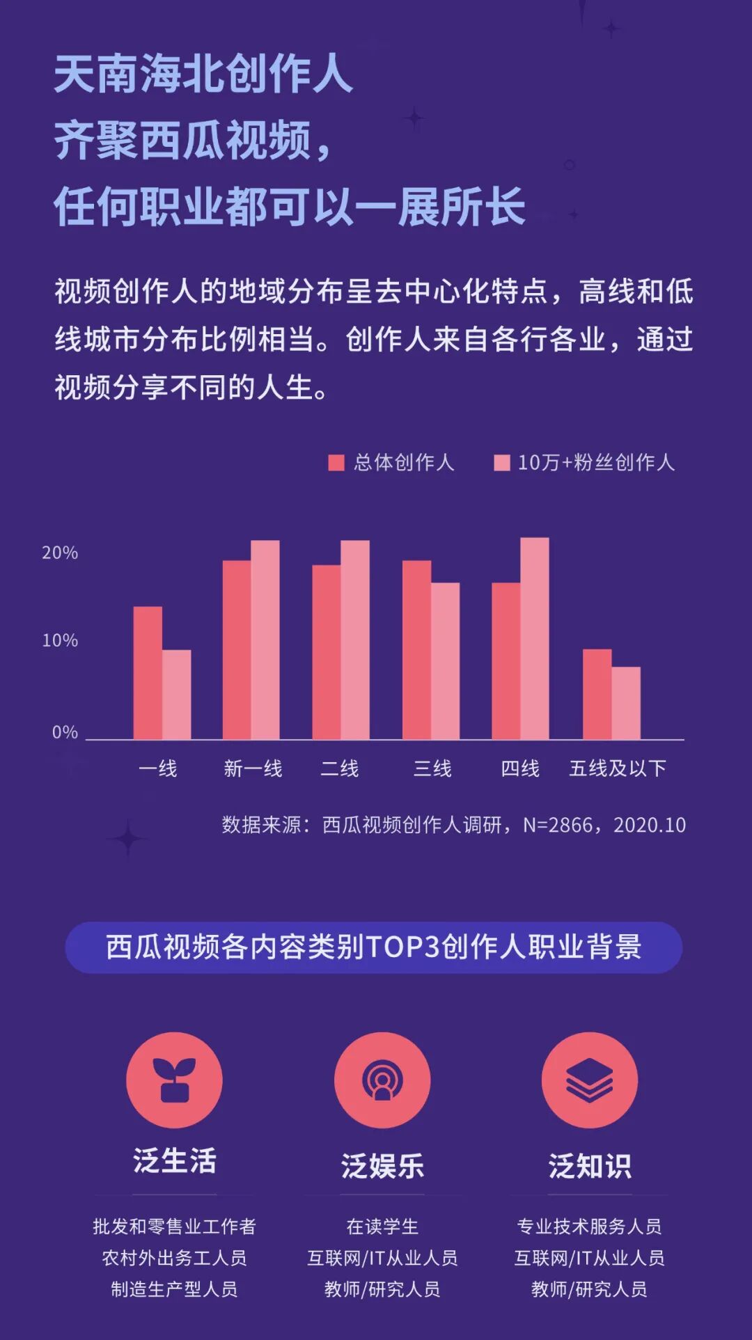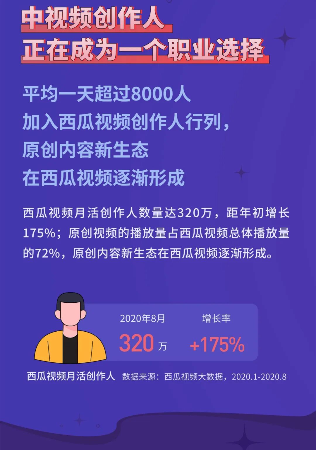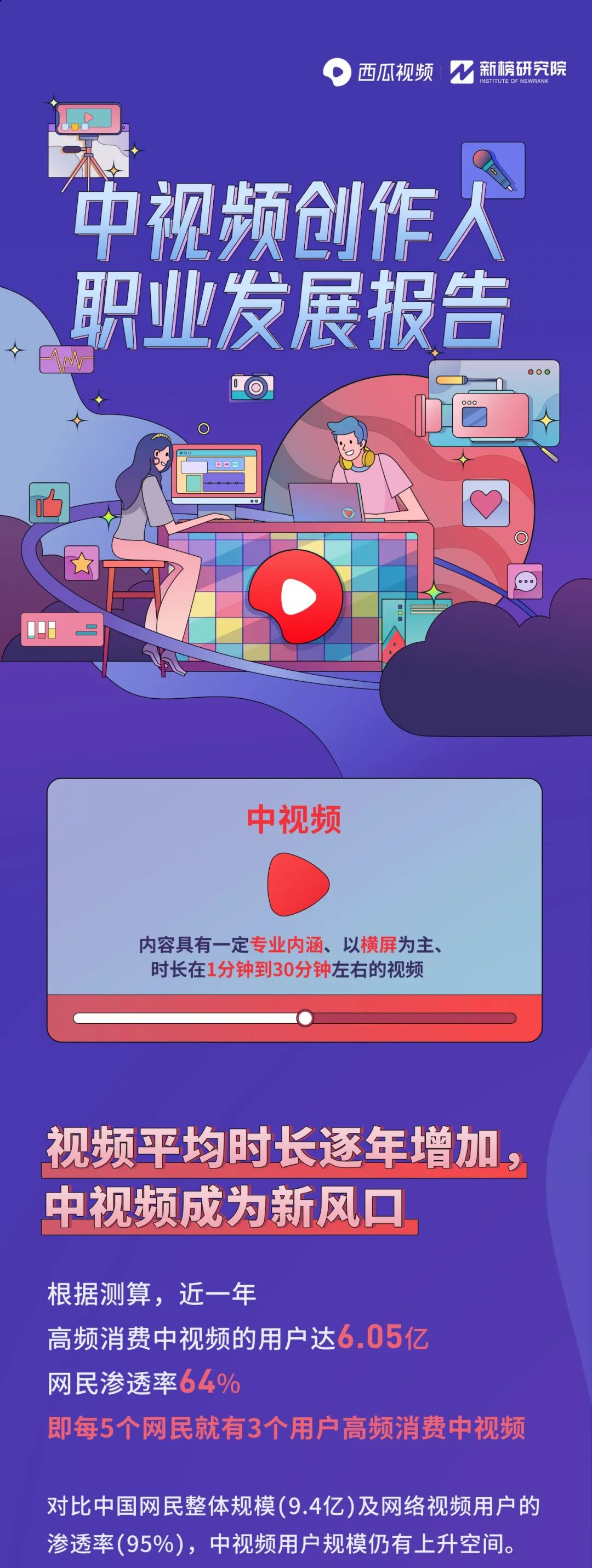 为进一步深入了解中视频创作人职业发展情况,西瓜视频联合新榜共同发布《中视频创作人职业发展报告》,探索中视频创作人作为一个职业的可能性及发展前景。