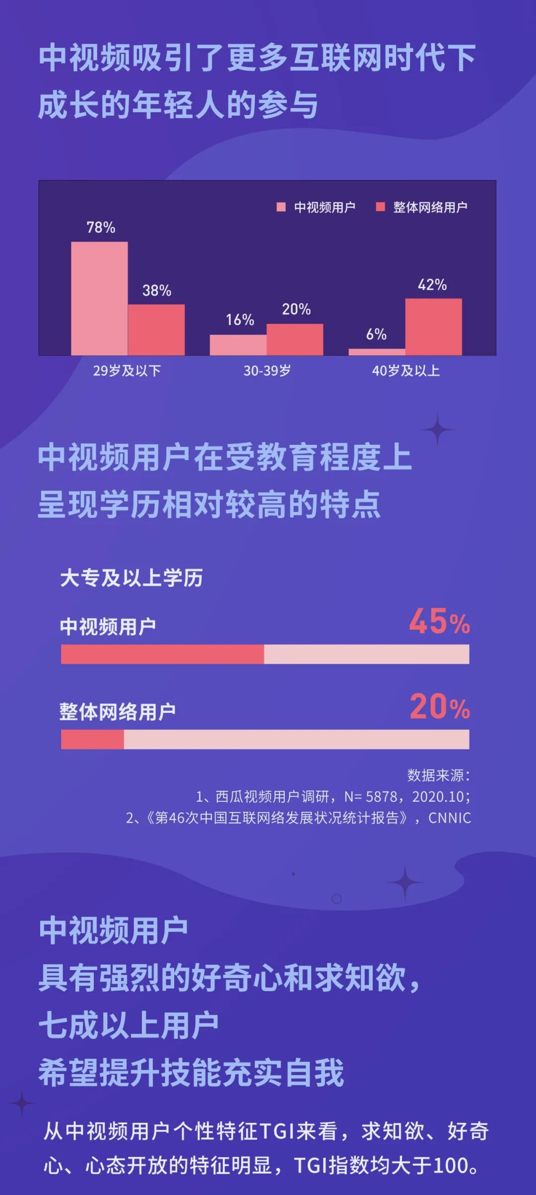据了解,中视频是区分于抖音快手短视频和优爱腾长视频提出的新视频概念,主要包括三方面特征,时长为1到30分钟,绝大部分是横屏,PGC占比更高。