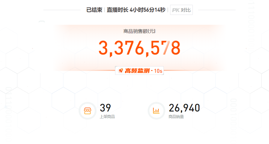 其中,第一场直播的爆款商品是一款客单价24.97元的网红无骨鸡爪,预估销售额83.29万元;第二场直播的爆款商品是一款客单价9.9元的红枣,预估销售额9.34万元。