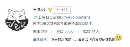 昨天晚间,美食短视频类自媒体“日食记”创始人姜老刀在朋友圈表示,“日食记”微信粉丝正式突破100万,微博粉丝突破300万。 “日食记”以治愈系温暖人心的美食短视频为主,其拍摄的美食视频在多个平台拥有大量粉丝。 - The End - 以上内容使用新榜编辑器发布。新榜编辑器,多平台一键分发、海量在线图片搜索、大数据帮你了解“什么值得写”、丰富的样式中心,可能是全中国最好用的编辑器。 | 新榜热文 | 功夫财经 | PGC视频报告 | 插坐学院 代认证 | 大神keso | papi酱拍卖 网红排行榜 | 评论区网红 | 左志坚 网红报告 | 57例融资 | 山寨号 白皮书 | papi酱 | 短视频风口 QQ百万粉丝 | 投资石榴婆 | 石榴婆说 特稿大电影 | 选题之源 | 视频自媒体 形势分析 | 阅读来源 | 政商参阅 政治第一 | 十万点赞 | 头条红利 本地号运营 | 投资观点 | 明星公号 公号买卖 | 鲁豫有约 | 管理之坑