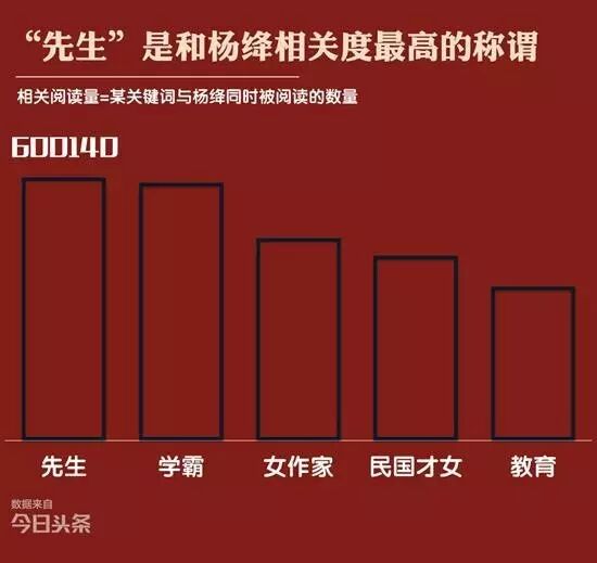 《大数据分析致敬杨绛:她是“最才的女,最贤的妻”》,今日头条此次推出了数据讣闻,用大数据致敬杨绛。文中称,当网友阅读有关“杨绛”的关键词文章时,杨绛的丈夫钱钟书相关阅读量最多;在网友提到杨绛时,被缀以最多的称谓是“先生”,杨绛先生成为网友对其独特的尊称。