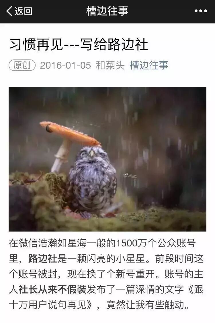 “路边社传媒”封号当天,三表是第一个过来安慰他的自媒体人。后来和菜头在“槽边往事”中推荐了社长的新号“社长从来不假装”。这些在爆文之后依旧被江明屡次提及。