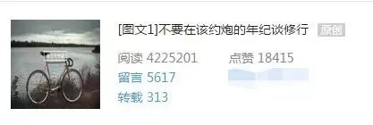 《不要在该约炮的年纪谈修行》就这样火了起来,有些莫名其妙,标题中“约炮”这样的敏感字眼丝毫没有影响它的刷屏。