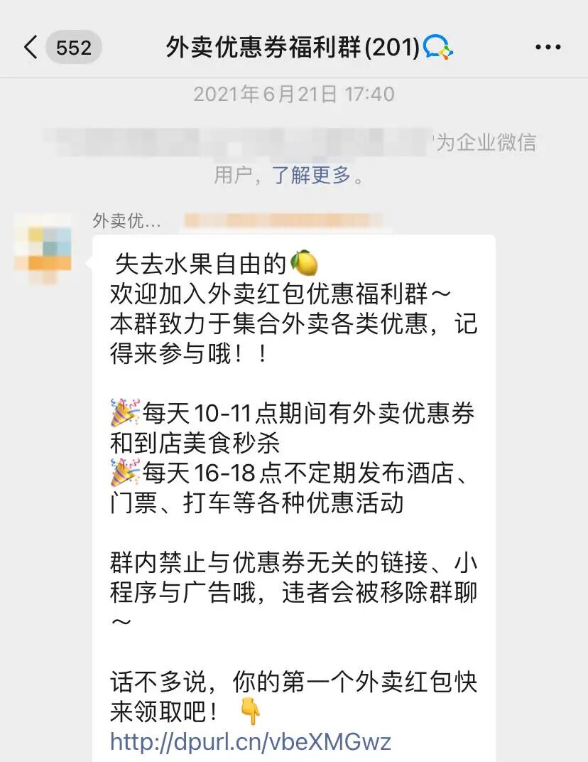 据外卖券公众号的一些玩家透露,其实这些外卖券主要来自美团、饿了么等外卖平台的官方推广活动,推广者只需要分享专属推广链接即可。