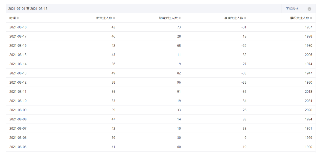 周周就提到自己账号虽然整体在上涨,但是单日掉粉现象一直存在,新增用户取关率在20%左右。