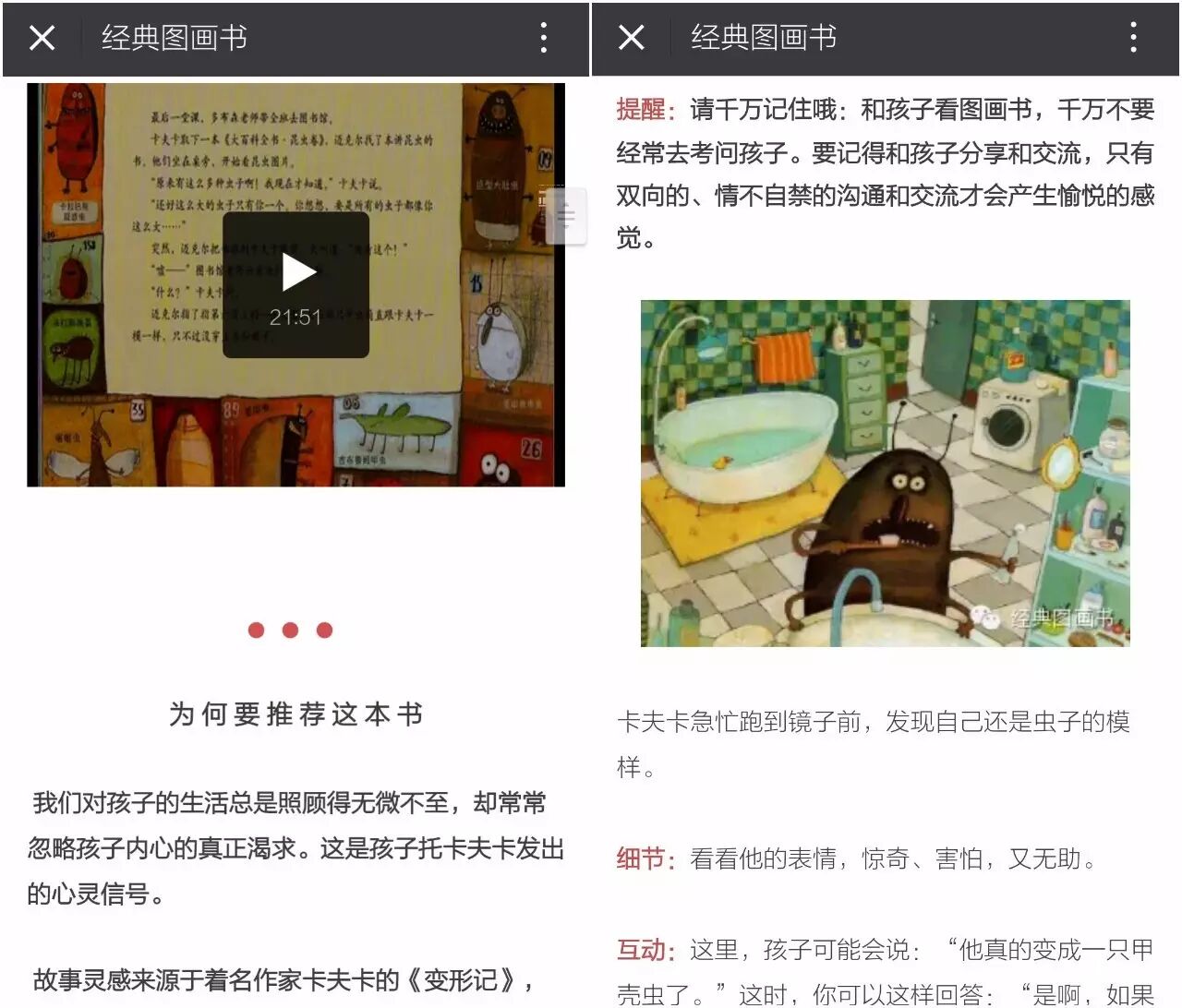类似的还有“经典绘本”,同样推荐了一些亲子阅读文章以及有声绘本,虽然诸多文章都源自转载,不过恰好也可以借此找到更多类似优质账号。