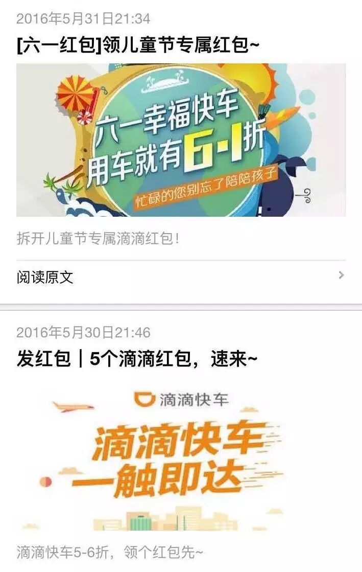 蒋万鹏:首先是总号,“滴滴出行”的服务号,这个也是我们最大的号,有7600万用户。然后按照业务线分,每个业务线有自己的服务号和订阅号,包括出租车、专车、顺风车、快车、代驾、试驾等等。按照用户分,我们有针对乘客和司机的帐号。按照地域分,每个重点城市都会上线一个公众号。主要想做到精准运营,提升用户体验,比如北京雾霾天我们会有针对北京的活动,广州下暴雨我们会有针对广州的活动,有地域号之后就能更加精准地服务用户。各个业务线和各个地域的公众号也会相互配合。如果是全国性的活动,就会由“滴滴出行”这个主号来牵头,全国联动,达到最大的传播效果。