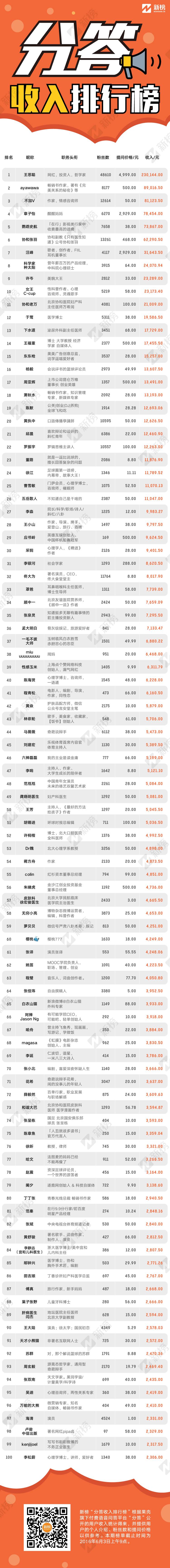 那么,有哪些人在“分答”里玩得最溜?又有什么类型的问题更受“偷听者”欢迎呢?今天榜妹为大家带来目前“分答”上收入最高的前100位用户排行榜。