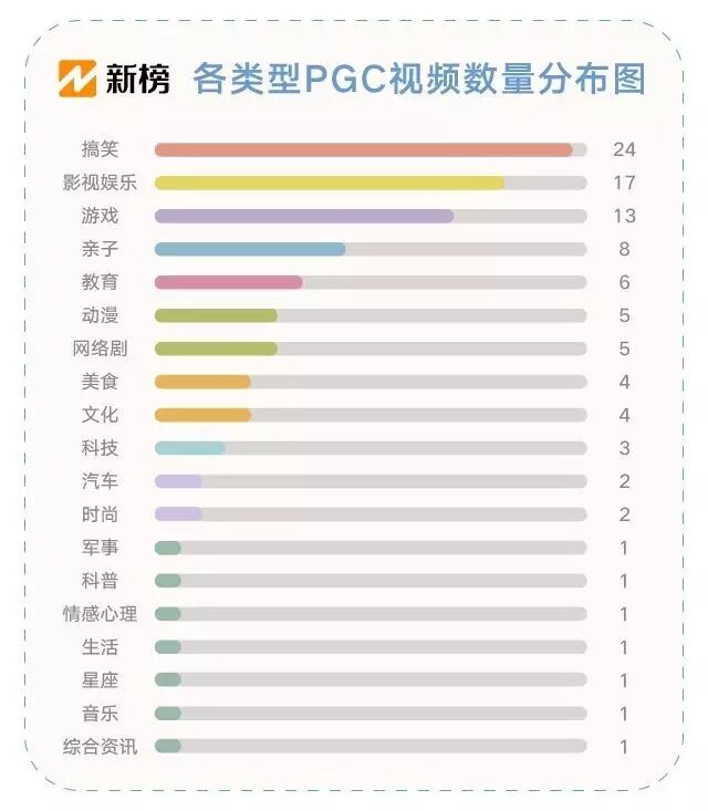 从5月累计榜Top20可以看出,搞笑类视频依然是网友关注的重头,其次是网络剧和游戏类,它们都属于泛娱乐类视频,这再次表明,娱乐仍是网民对PGC视频的最主要需求。