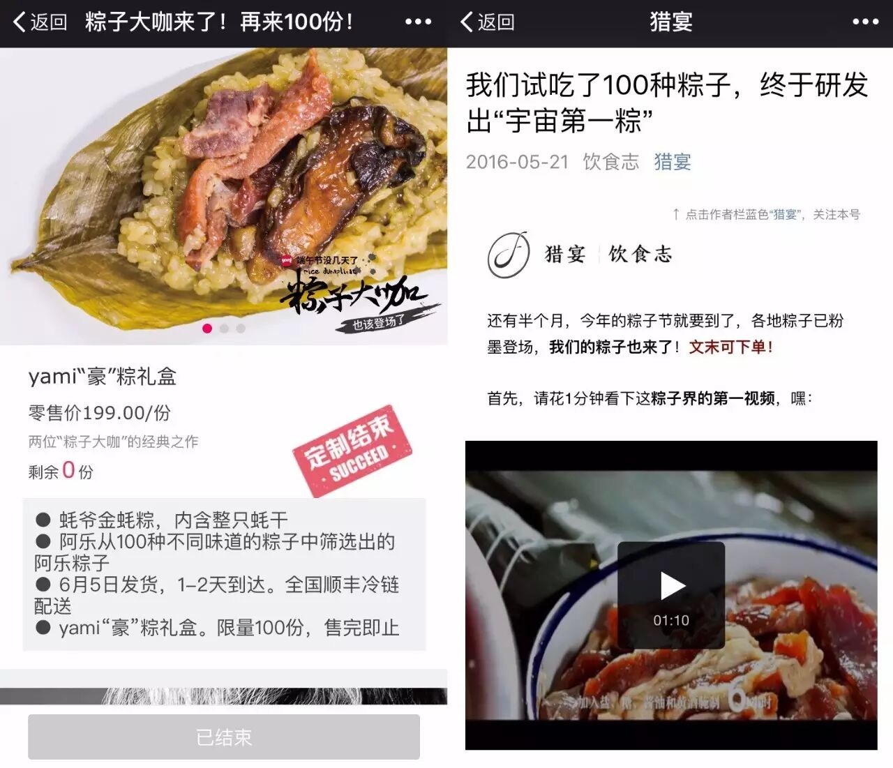 用户在捕捉到他们所需的信息后,就会有转化率。很多人可能会觉得我们的粽子卖的有点贵,20元/个,但我觉得优质的产品有时候是不需要担心定价过高的。我们的内容的确在推动销售上起到了很大的作用。