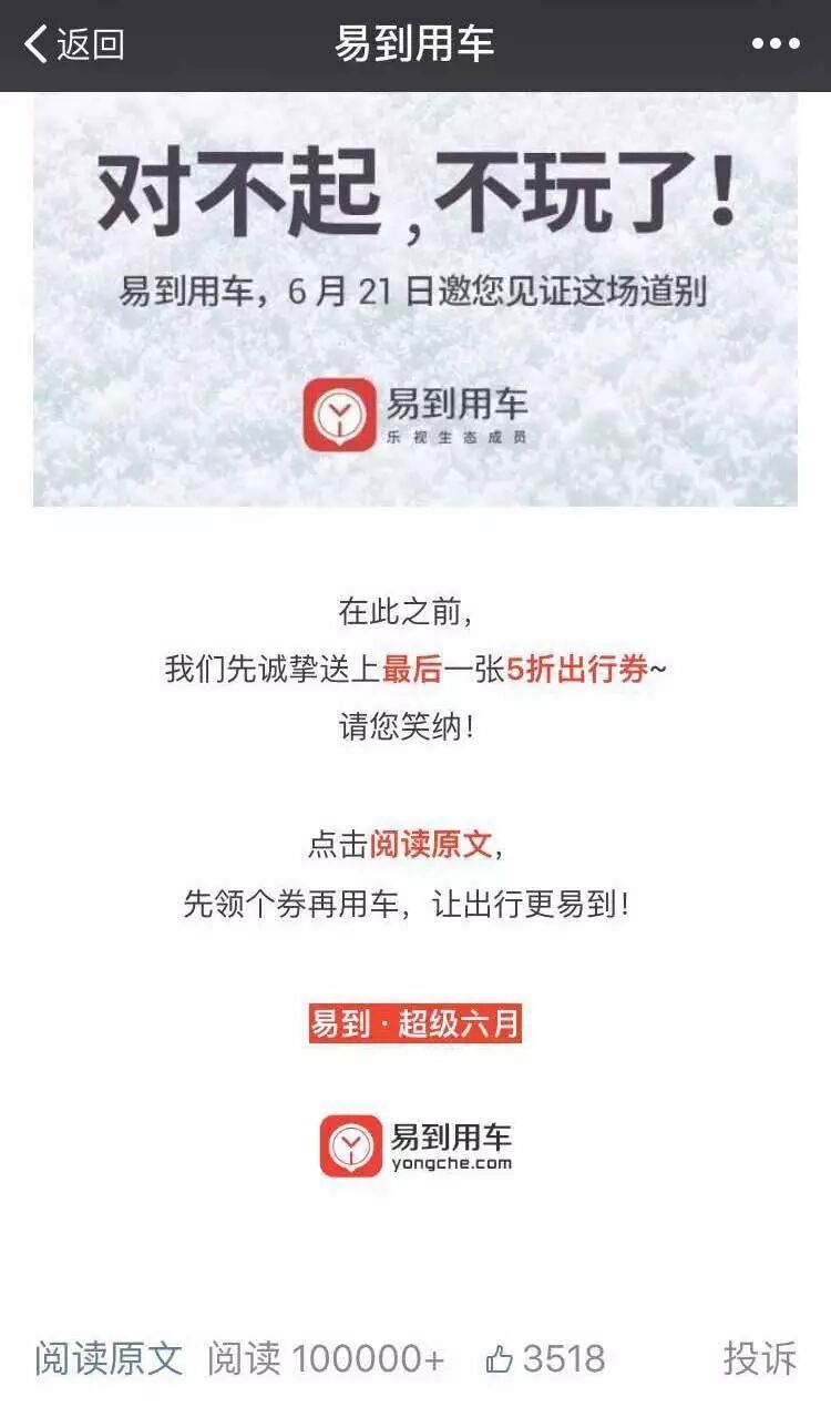 易到用车说“不玩了”,必然不会是倒闭了,那么它究竟想干嘛?根据之前比较雷同的事件营销套路,基本可以猜测,有以下几种可能性。