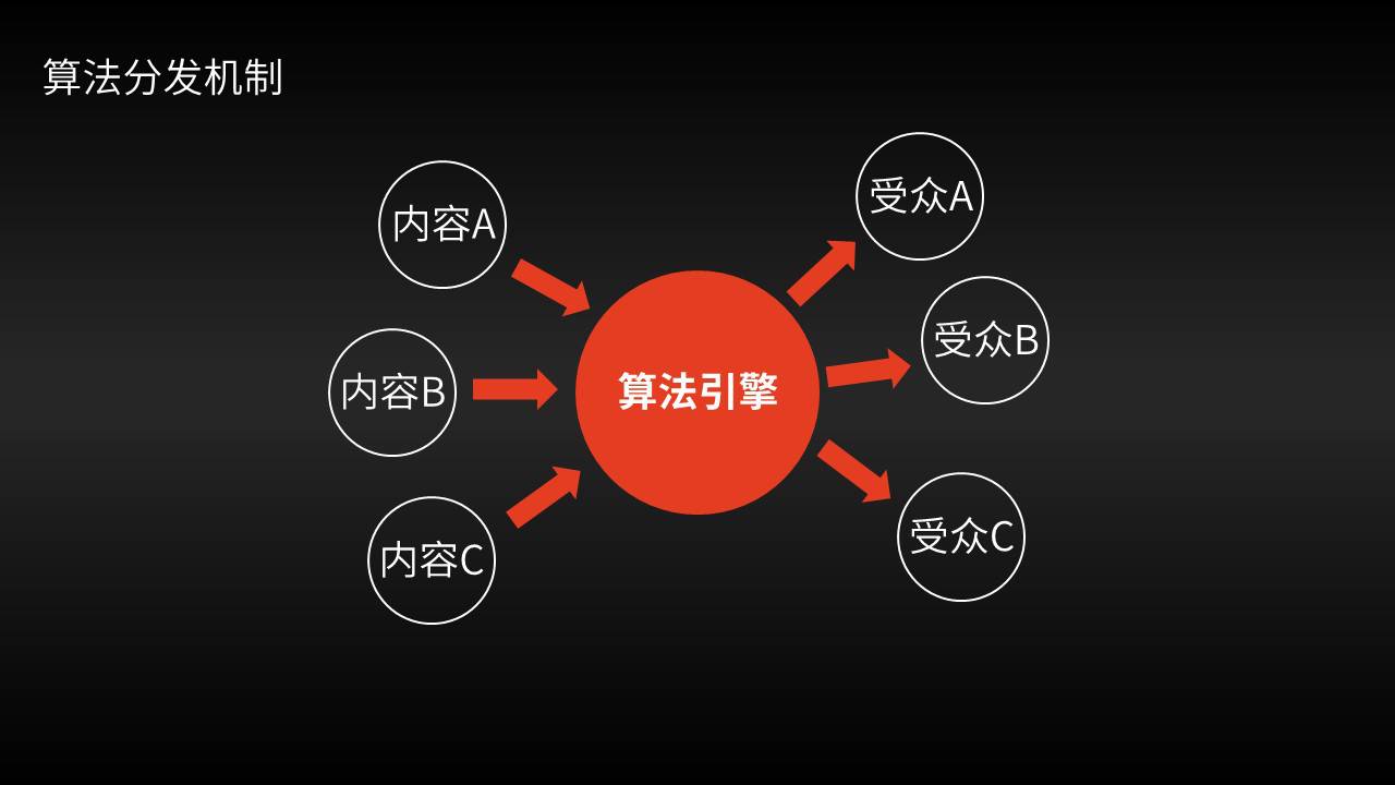 这种模式将整个平台上的内容整合到一个由计算机算法所控制的“推荐引擎”中,由推荐引擎对内容的质量和类别进行区分,再根据用户端的各种数据,对用户阅读内容的兴趣进行分类,然后把不同的内容分别推荐给不同的用户。