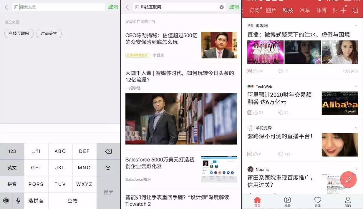 ▲ “文章搜索”标签里隐藏着更加垂直的内容入口