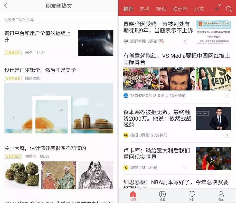 ▲ “朋友圈热文”有点像“今日头条”