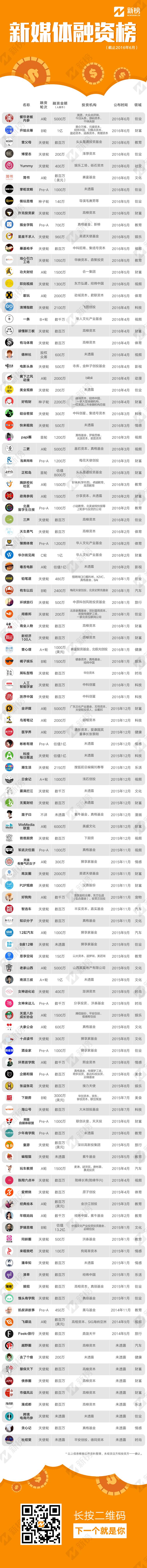 从上面这张新媒体融资表可以看出,新媒体融资加速的趋势相当明显。2016年这小半年新增的融资案例超过50例,比2015年新媒体融资案例总数还多。