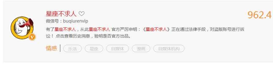 “星座不求人”在短时间内就俘获了200万微信粉丝,目前,“星座不求人”几乎每天都能产出10w+的爆文,平均阅读数7w+。新榜指数高达960分以上,在新榜公布的最新情感类周榜中,“星座不求人”位列第四位,远超同类的多个微信大号。再加上其它视频平台,蛋壳君的火爆程度可想而知。