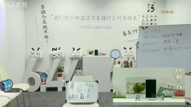 5月10日,小米正式发布预热了很久的大屏手机小米Max。发布会当天16点,小米在B站开始了一场“史上最无聊,不知道什么时候结束”的“超耐久无聊待机直播”,从5月10日下午16:00开始,连续不间断直播。每隔1小时点亮手机屏幕一次,如果手机有电,则在12–24点时间段抽奖,手机没电后停止抽奖。