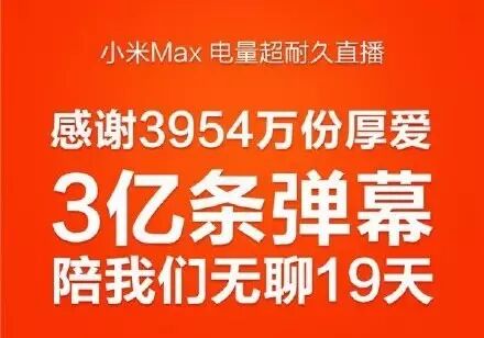 这场漫长的B站无聊直播一直持续到了5月31日上午,小米手机官方微博宣布,小米Max全程待机17天21小时,弹幕讨论总条数突破3.17亿,共送出2238台手机,围观人数3954万。