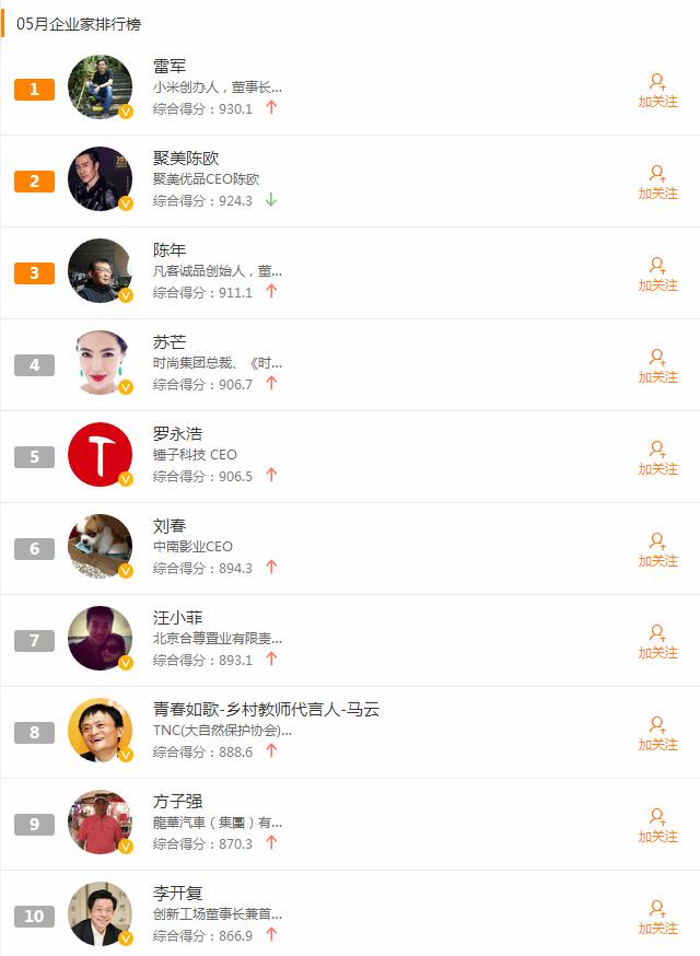 从最新的5月企业微博品牌榜可见,的确有一批喜欢频频露脸的企业家成功为自家的品牌曝光做出了极大的贡献。(点击“阅读原文”,查看最新榜单)