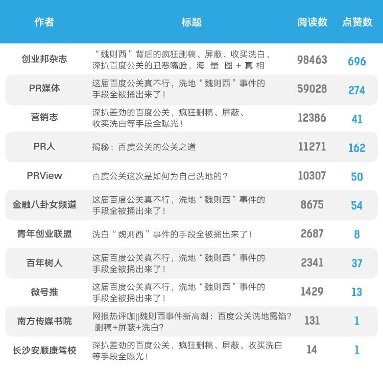 新榜:关于起诉,据了解,说你为百度“洗地”的那篇文章其实是“PR媒体”转载的,而且有阅读数更高的其他转载,为什么你选择起诉这个账号?