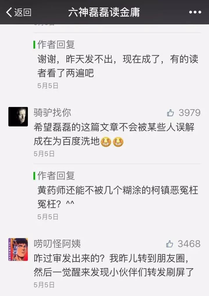 六神磊磊:虽然文章另有署名,但是引起最大影响的是这个号,毕竟转载也是要负责任的。