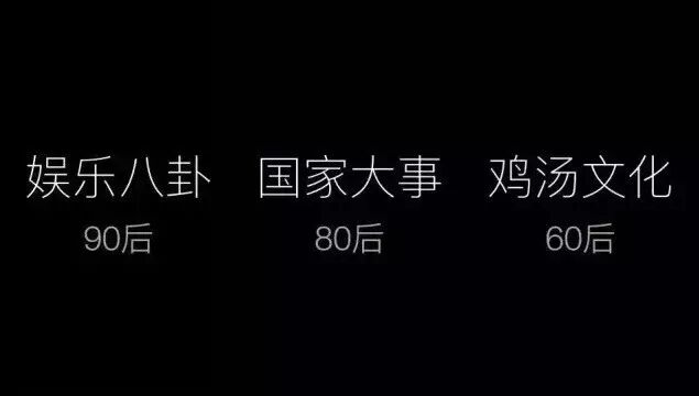 在腾讯去年公布的数据中,90后用户更关心娱乐八卦,80后用户更关心国家大事,而60后的微信用户,最关心的就是鸡汤文化。