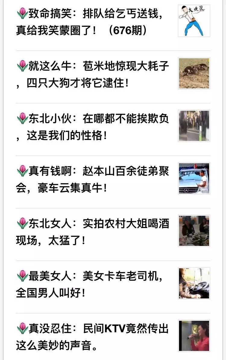 如果说以上三类公众号文章还需要一定的“技术”含量,那这类搞笑段子的门槛就相对低了不少。这类文章通常全文只有一个引导关注,一则制作粗糙的视频,一些胡拼乱凑、流传已久的笑话集合。