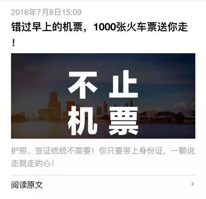 除了飞机之外,携程旗下的火车票预订平台“铁友火车票“也发起了同样的活动,从下午15点开始,只要你在接下来的4小时内后台报名,铁友准备了100万旅行基金,1000个名额,送你到任何一个你梦想去的地方。从反应速度和活动创意来说,携程这次借势借的几乎完美。