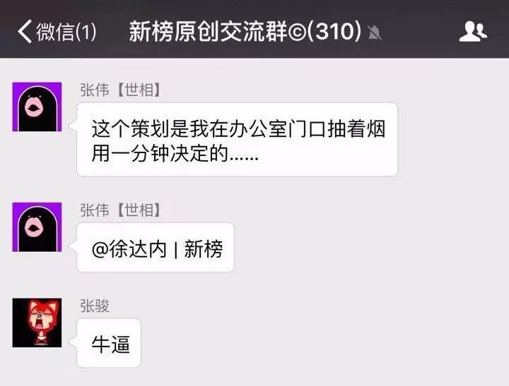 逃离北上广刷屏之后,又开始有一些人出来说创意是他们的。张伟在新榜的“原创交流群”证实,创意是自己的,“这个策划是我在办公室门口抽着烟用一分钟决定的”。