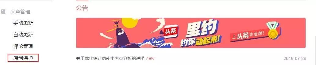 8月9日,头条号瞄准版权维护痛点,推出“原创保护”功能。在此之前,几乎所有关于“原创保护”的举措都是平台内的自纠自查,无法全面保障作者的著作权益,头条号第一次实现了跨平台维权。抄袭发生后 6 小时内即可被监测抓取,最快可在 24 小时内删除侵权文章,平台免费帮助作者维权。