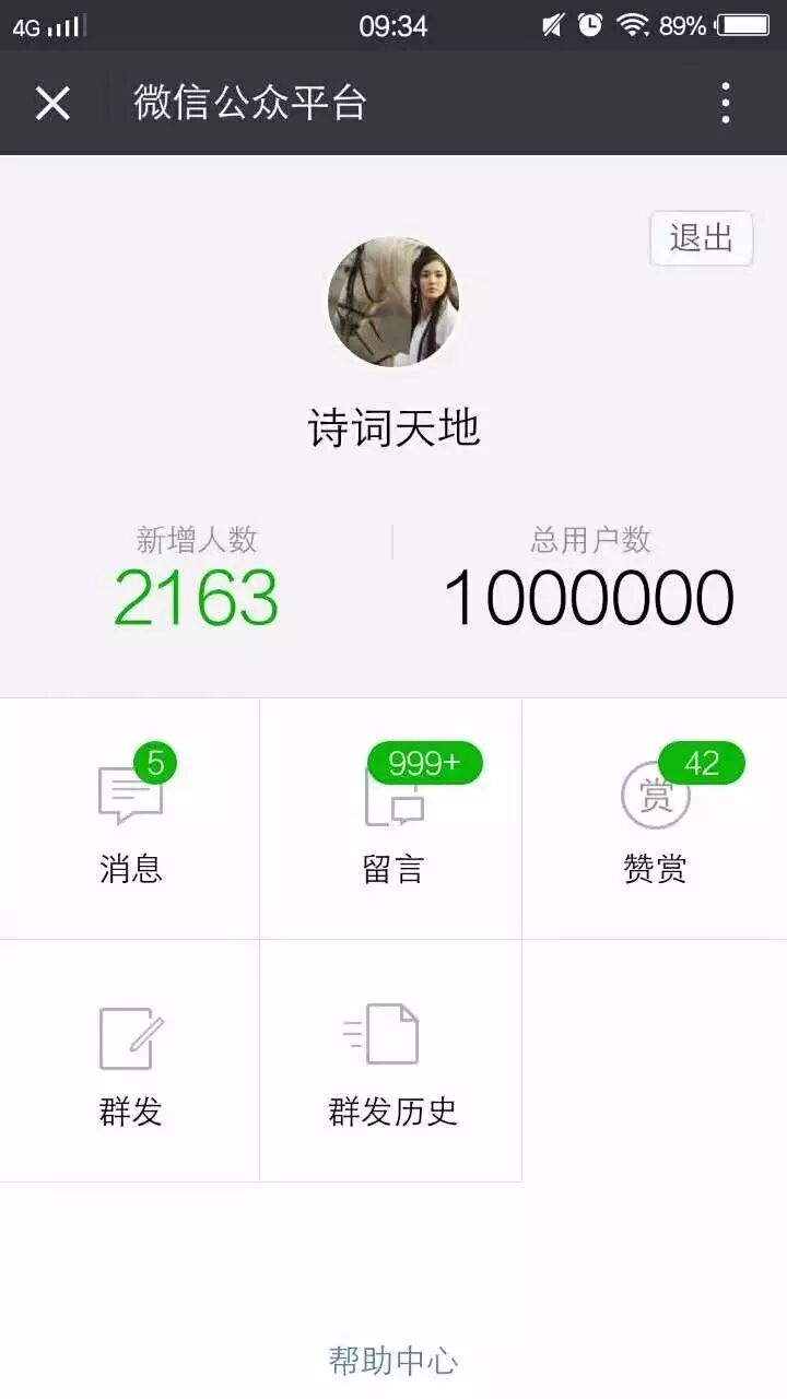 今天上午,公众号“诗词天地”的运营者在朋友圈发了一张截图,从截图中可以得知,“诗词天地”粉丝突破一百万,正式加入百万粉丝俱乐部。