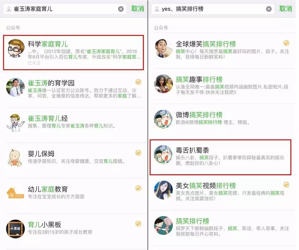 名字画风变化剧烈的当属以上这个公众号,这个公号改名后内容显然比之前更加活泼了,这也许也许和公众号定位调整有关。而且这个公众号名在微信内搜索时,出现的结果唯一。