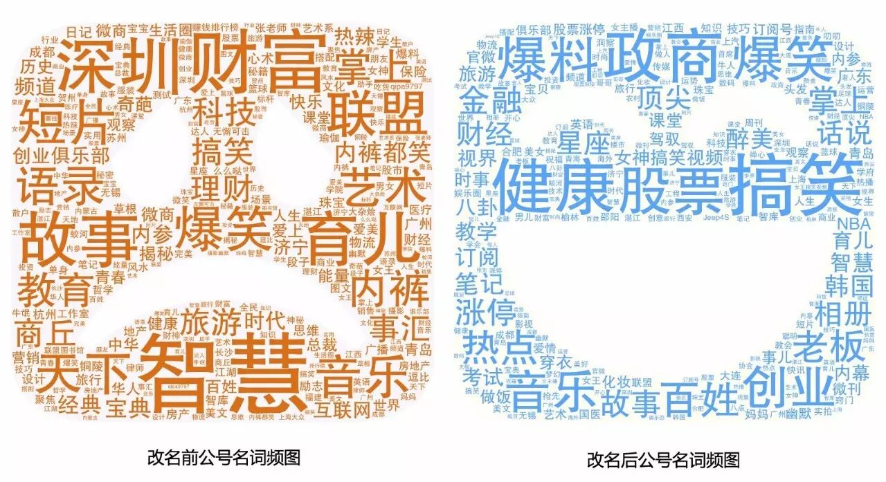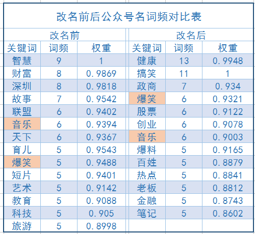▲ 改名前后公众号名词频对比表