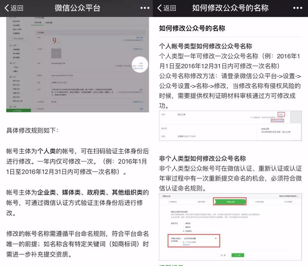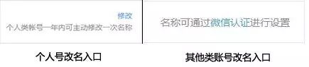 ▲ 个人账号改名入口和其他账号改名入口(后台“公众号设置”页面)