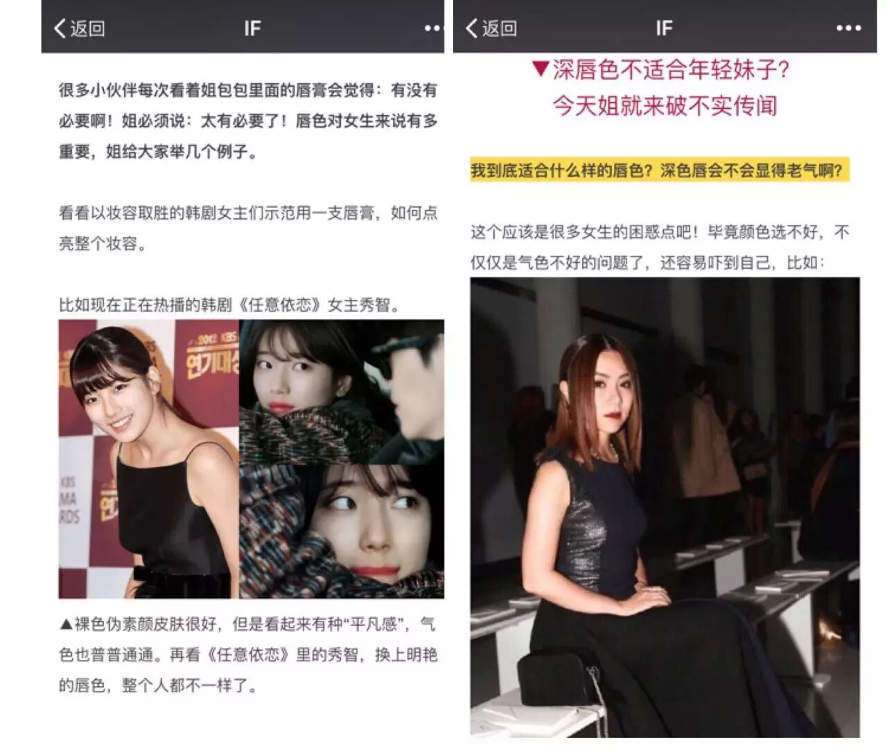 除了爆款单品,打造爆文也是if 时尚的家常便饭。《像陈意涵一样做一个33岁的少女》《袁姗姗一露马甲线就成了女神,只有你还在吃吃吃……》《陈小春& 应采儿:在全世界面前拽得要死,也有人让你一下就破功》这样的刷屏爆文均来自if 时尚。