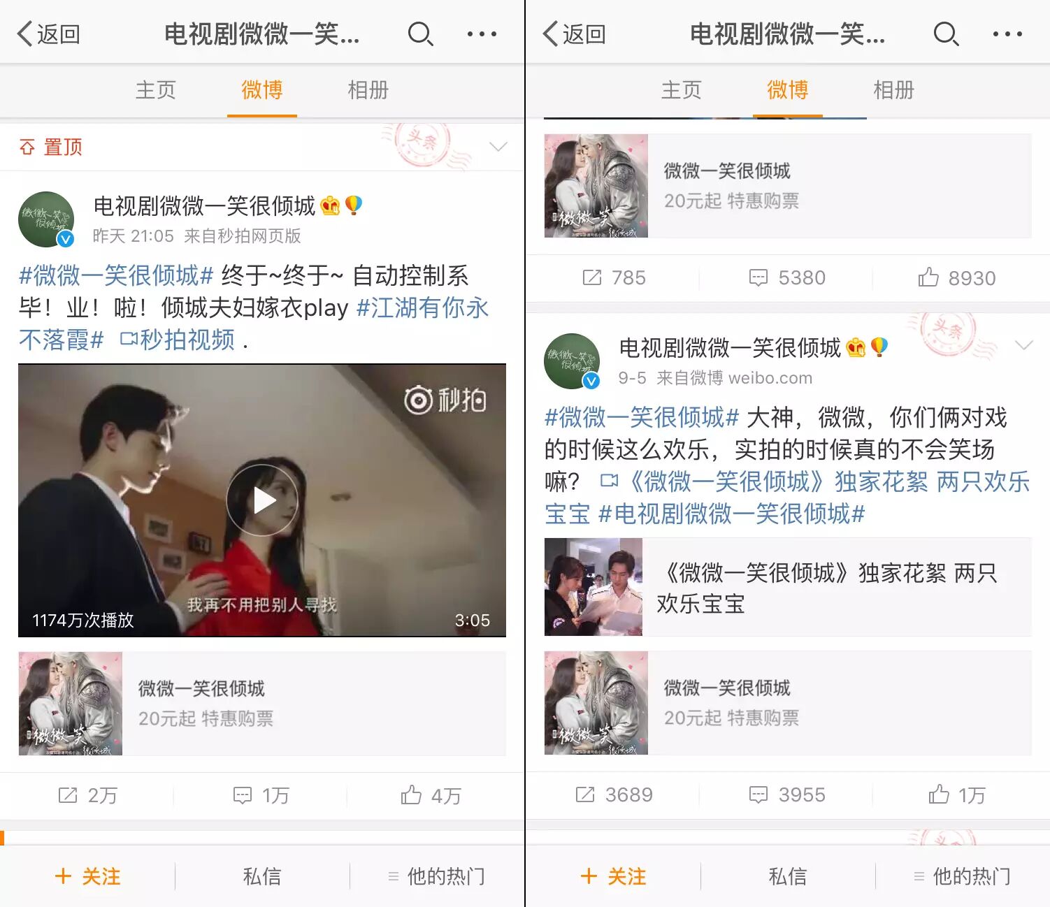 PS. 有小伙伴问,《微微一笑很倾城》的营销,追剧粉会不会买账。答案是显而易见的好嘛!