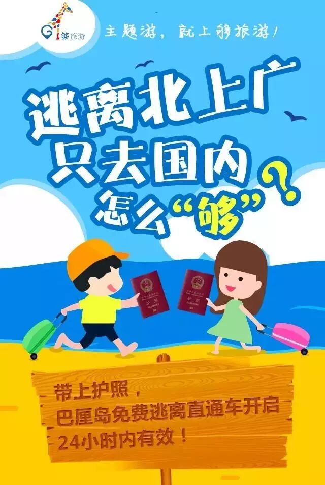 再比如另一个旅游类App“够旅游”,同样在“新世相”之后推出了自己的活动——逃离北上广,只去国内怎么“够”?将逃离的目的地扩展到了国外,诱人程度更上一层楼。