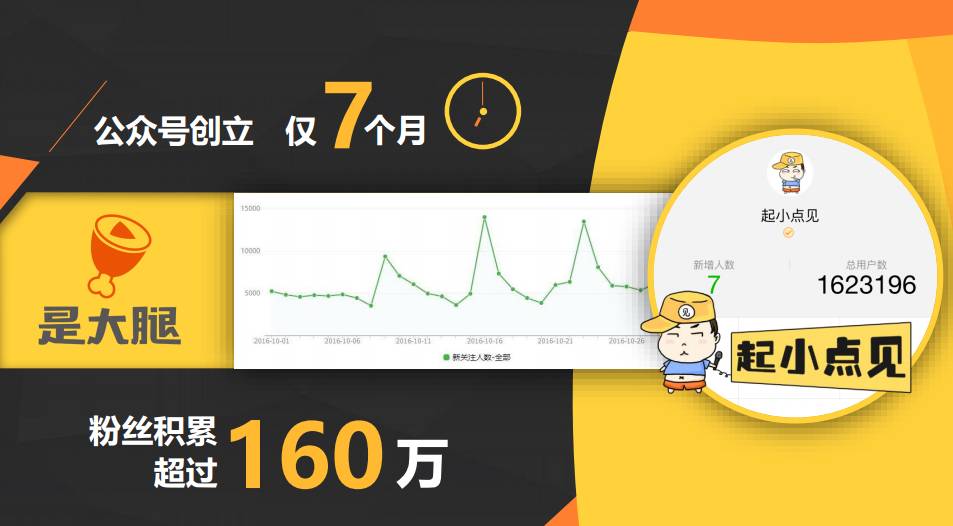“起小点见”这个公众号是2016年4月做的,7个月之间160万的订阅,主要是因为行业中直播市场有大量用户关注,但没有一个专门的媒体关注,我们可以说是在竞技直播、娱乐直播、游戏直播中的第一个媒体。