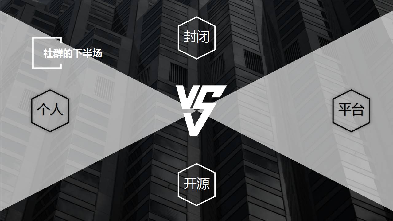 社群的下半场在这两个确定的逻辑之下,我认为有两组的关系。一组是个人和平台的关系,一组是封闭和开源的关系。