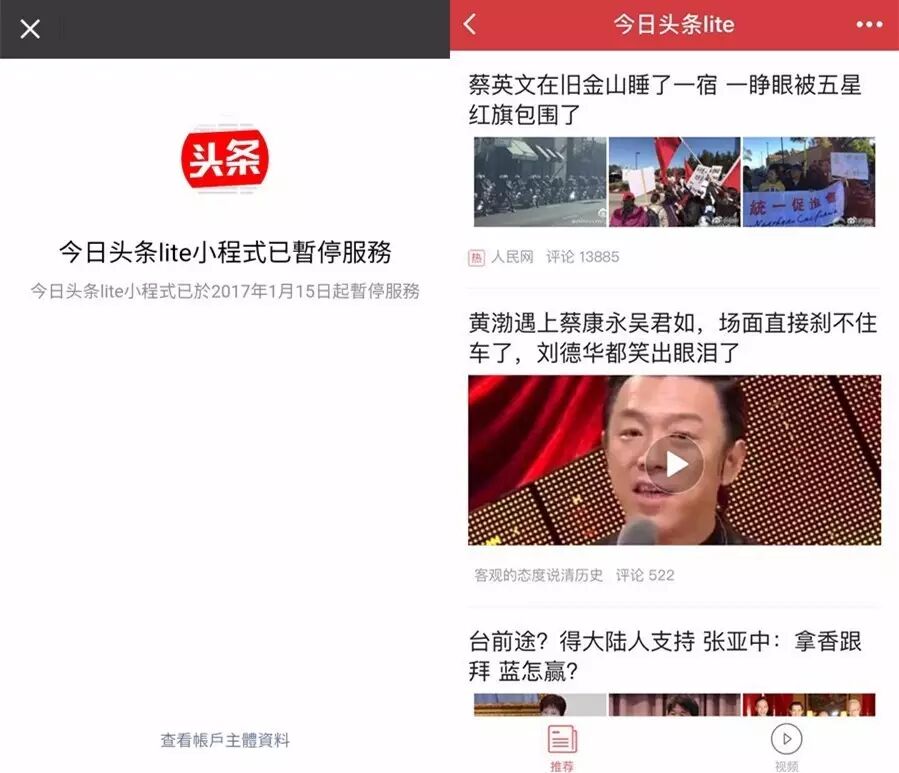 新榜讯 1月15日,今日头条 lite 小程序宣布暂定服务,点击进去无法进行下一步操作。在大家纷纷猜测具体原因时,今天今日头条 lite 小程序已可以正常使用。