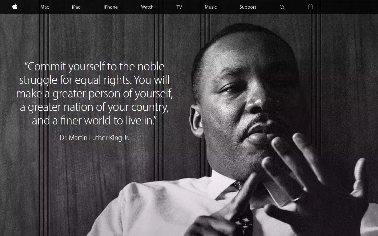 先从这套营销的画风开始说起。这些天,如果你打开苹果的国际官网,你会看到马丁·路德·金大幅黑白照片和名人语录,黑白色调,颇有质感。但如果你打开的是苹果中国的官网,你会感觉像是突破了“次元壁”,你将看到鸡年主题的中国年画,橙色、金色的主背景,如果非要用词语来形容这组年画,那就是“亮瞎了”,一点也不苹果。