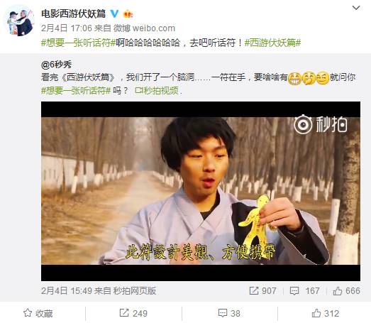 电影发布预告片并不是什么稀罕事,不过《西游伏妖篇》前后期彩蛋短视频不断,很适合新媒体磁场的传播互动。