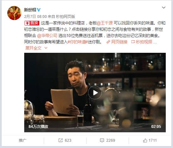 2月7日晚,“新世相”正式推出这部深夜美食网剧《你的味道》的预告片,并向网友发出第一次美食故事征集,称被选中的10个人会收到一份免费往返机票,故地重游,和回忆中的味道见面,并且有机会成为这部网剧的主人公。