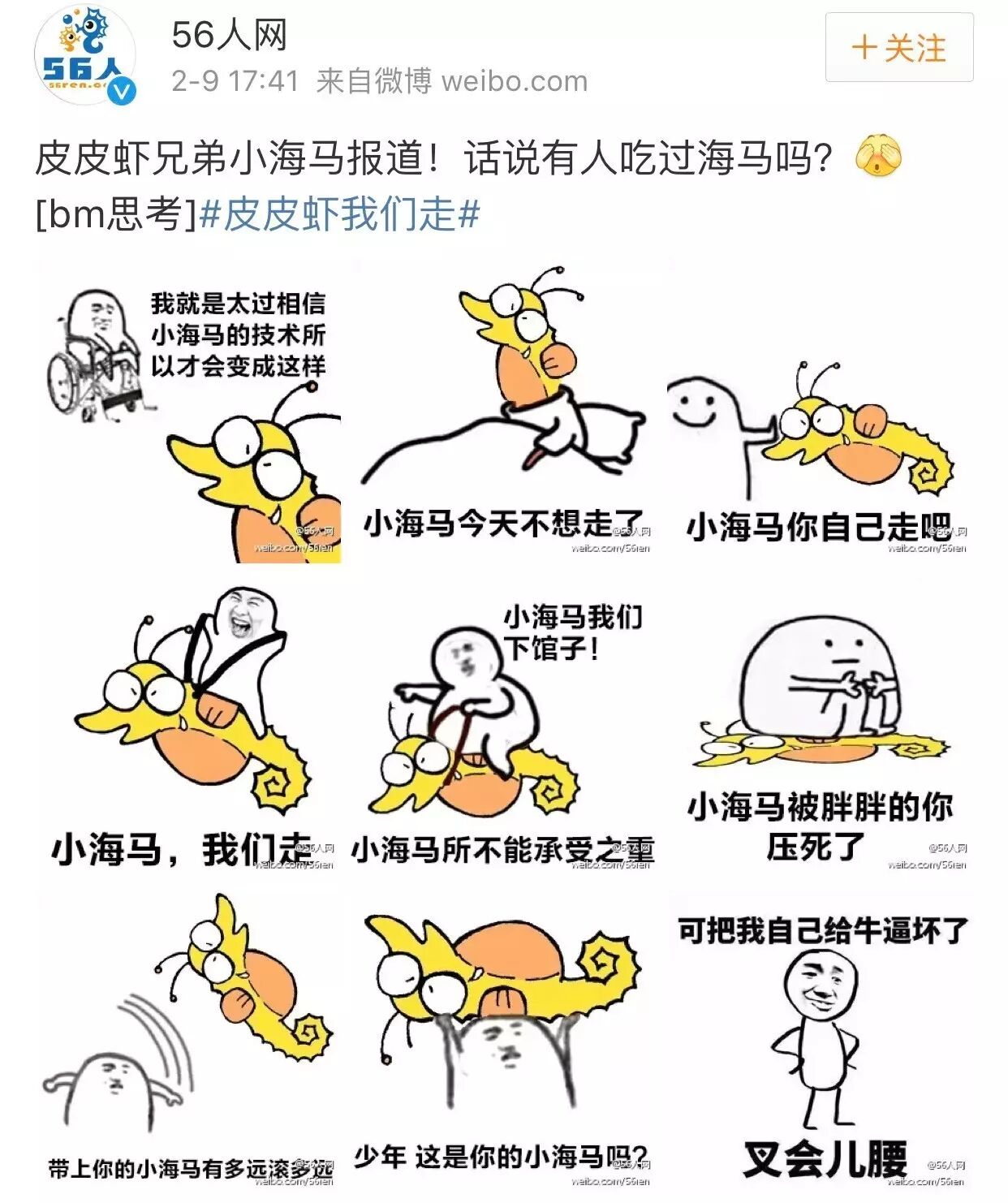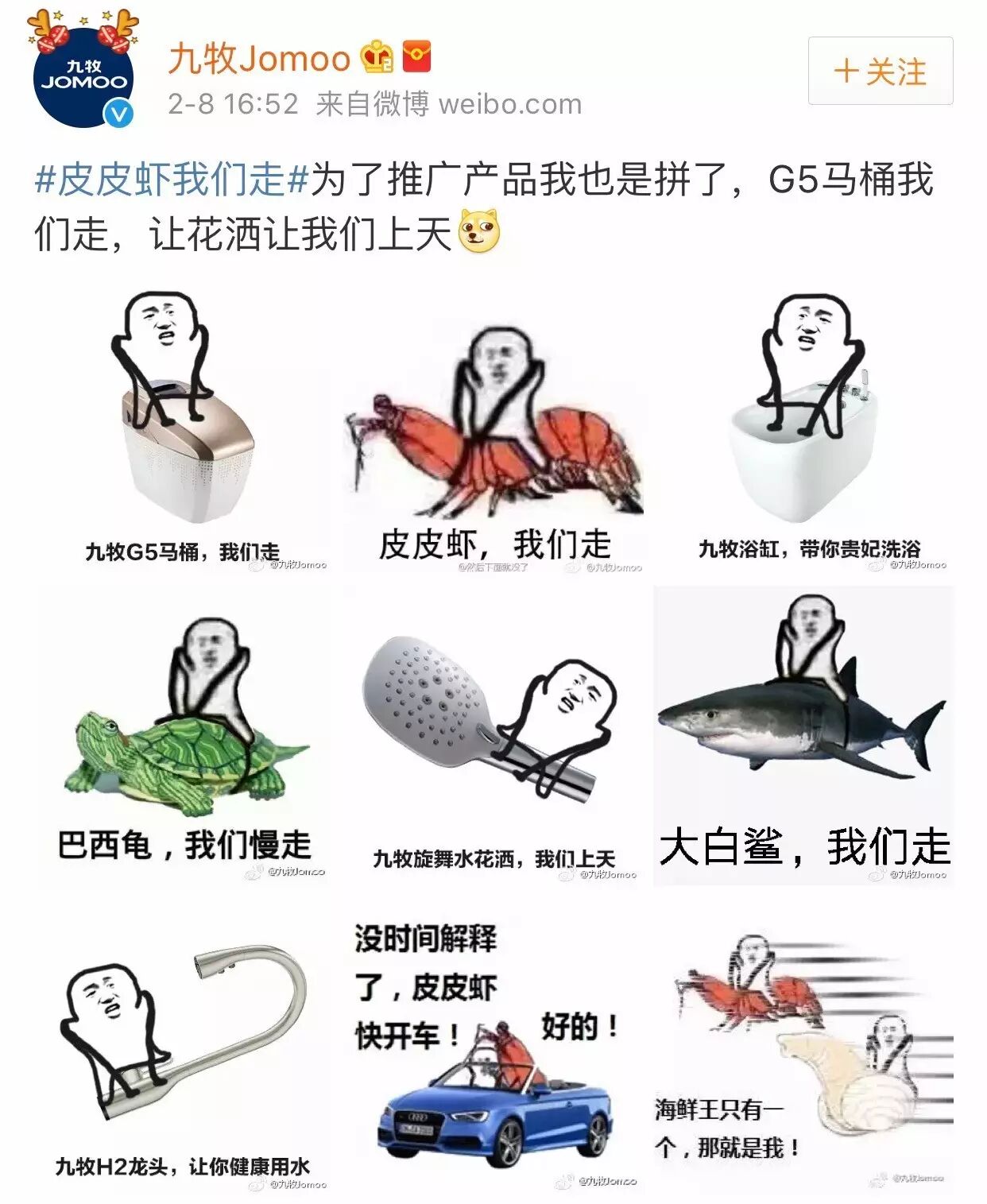 有上来就声称是来蹭热度,并植入自家品牌的,仿佛要带着皮皮虾走遍天涯海角。