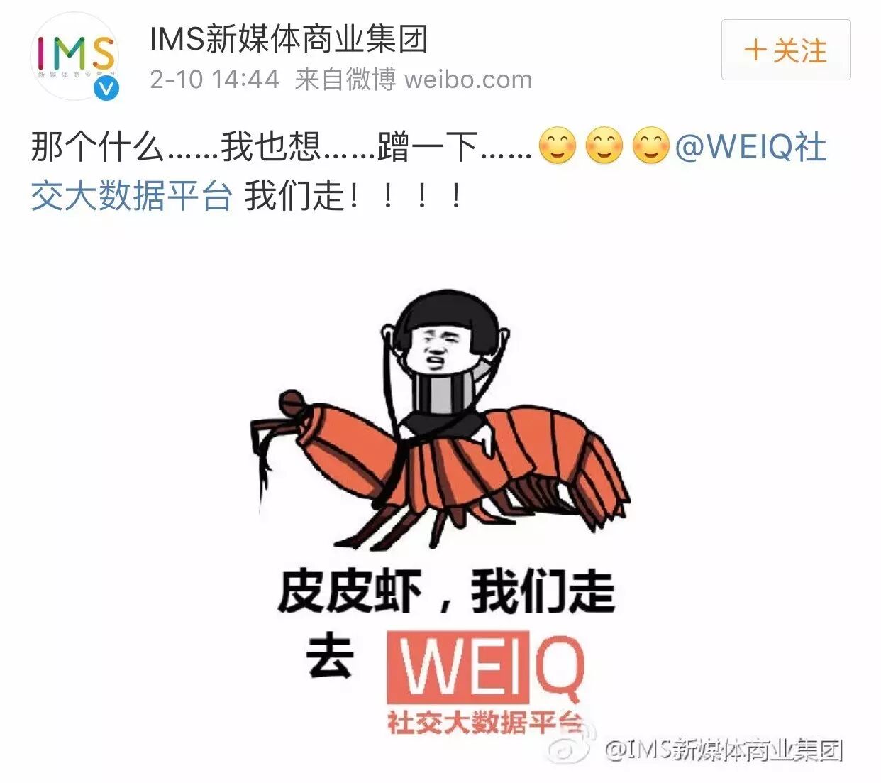 随之而来的是,品牌也纷纷一拥而上。来看看这些蓝V们都是怎么用皮皮虾借势的吧~