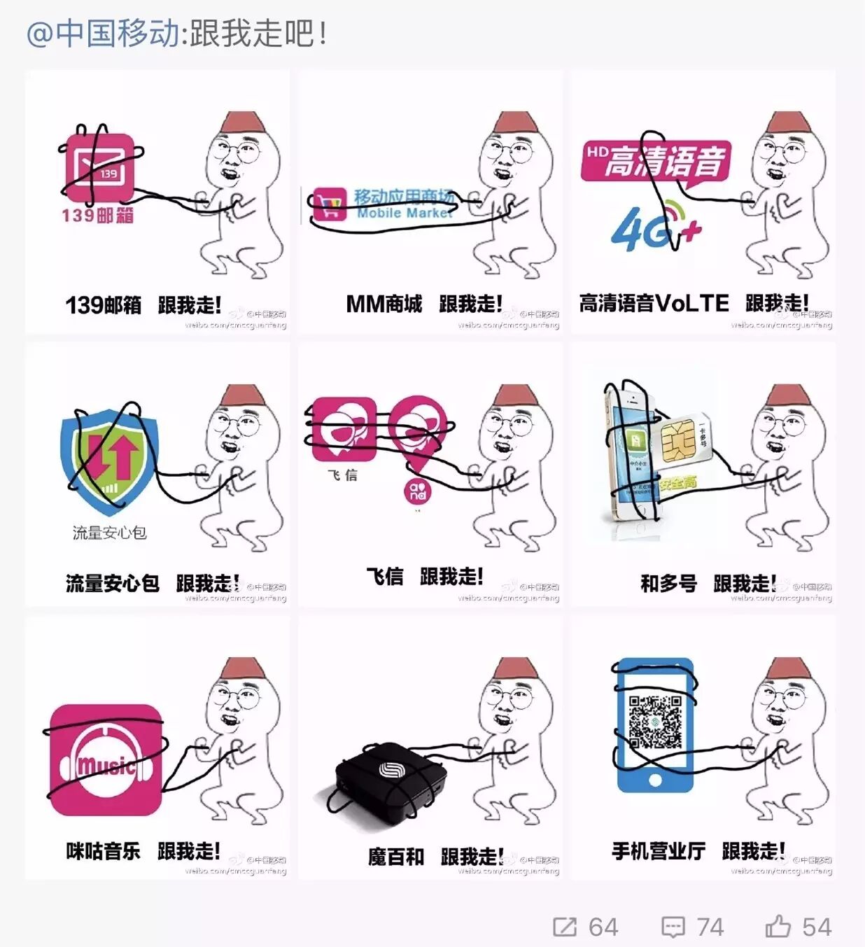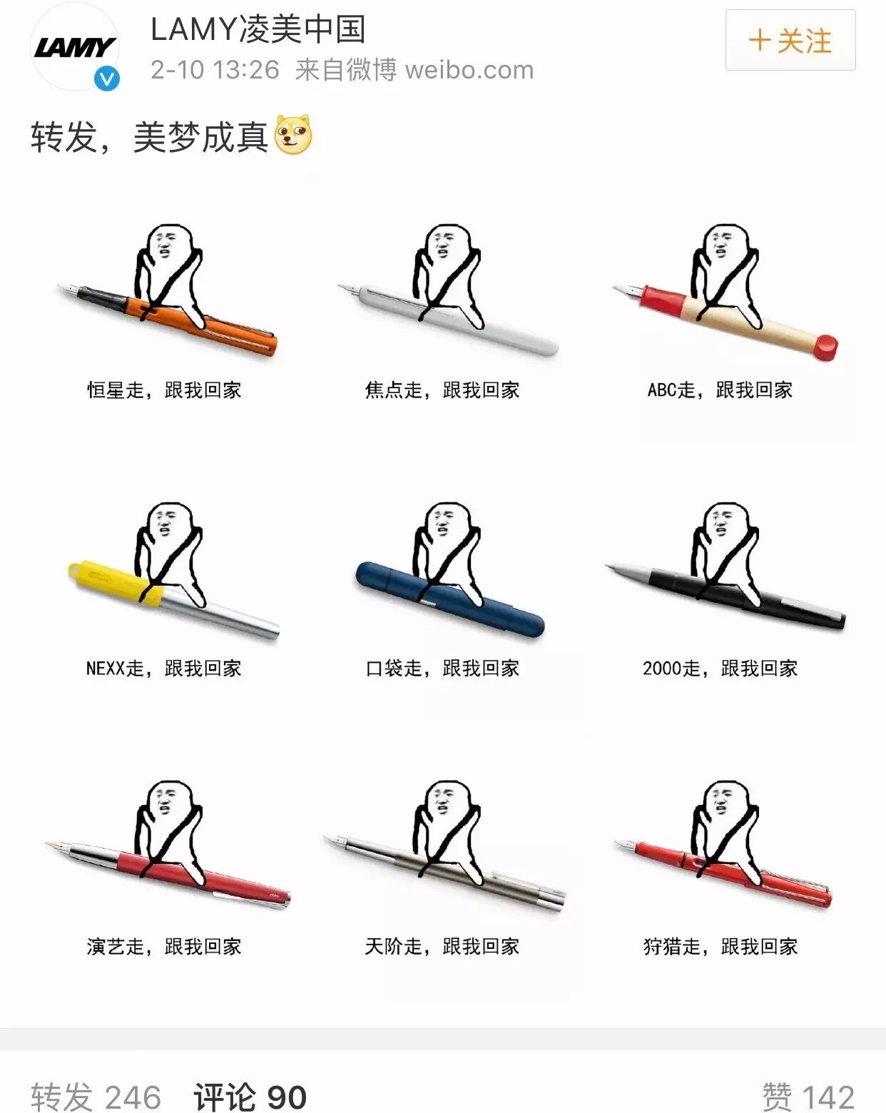从药膏、挖掘机、玻尿酸、苹果、沙发、冰箱、洗衣机、马桶、浴缸、钢笔、果冻、瑜伽垫、口红、钢琴、汽车、坦克……到各家的品牌LOGO,都成为蓝V的“坐骑”。