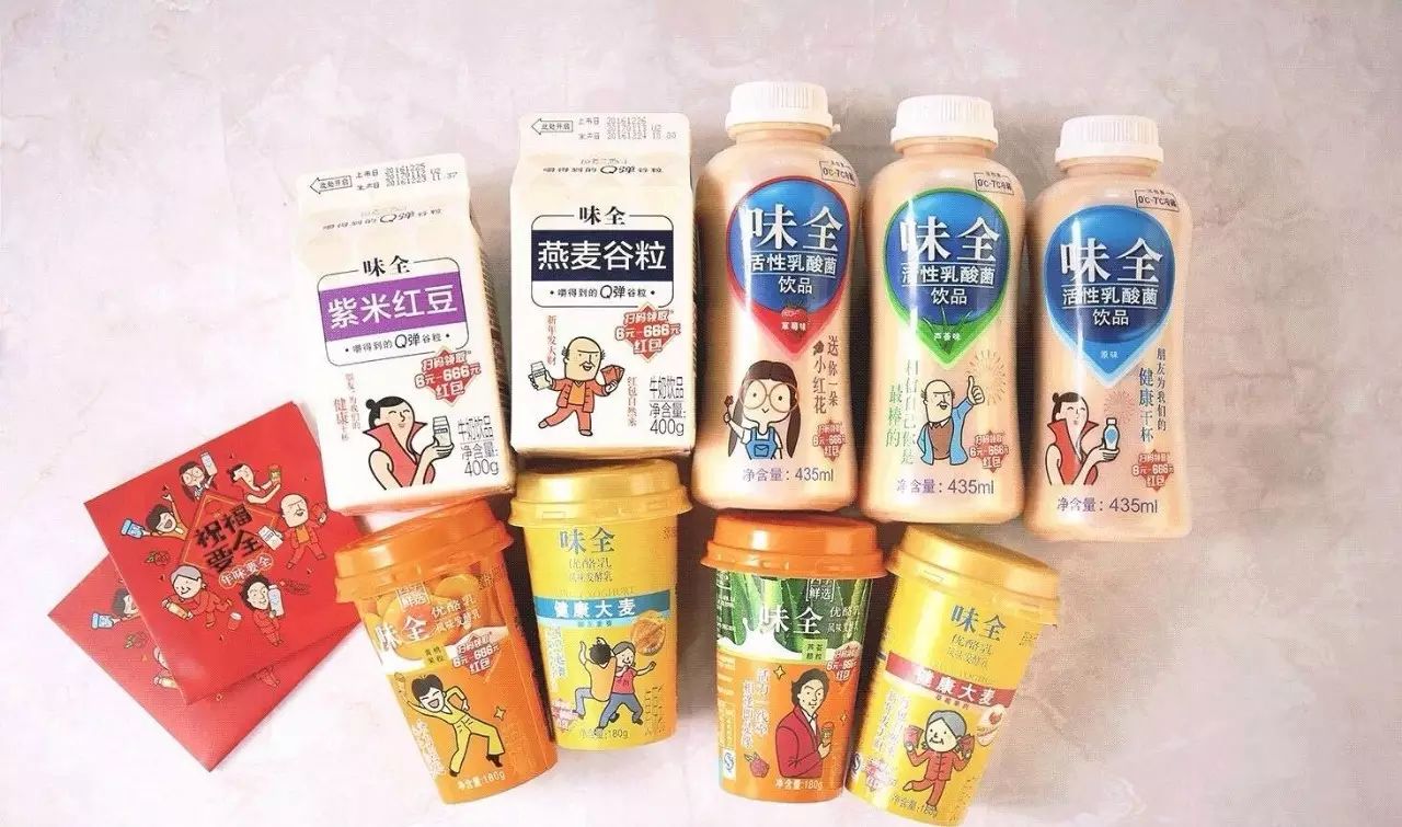 正值冬季,天气寒冷,味全酸奶和果汁不可避免容易出现销量下滑,而味全借中老年表情包的热度,在线上推出了自制春节贺词表情包的H5小游戏,也将线下产品包装上设计了同款表情包,在获得关注度和传播量的同时,达到了广告宣传目的。